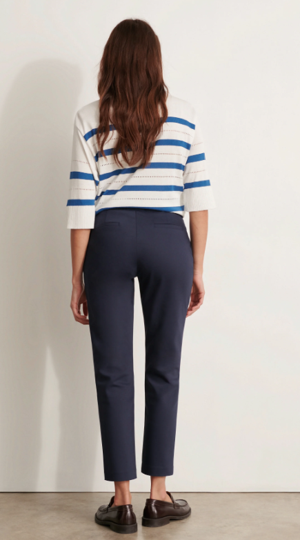 Незаменимая вещь для весеннего сезона! Джинсы 7/8 из эластичного хлопка выделяются своей элегантностью и комфортом. Прямой и слегка приталенный крой гарантирует оптимальный комфорт. С двумя передними карманами, двумя задними карманами и карманом для билетов он сочетает в себе практичность и стиль. Манжеты внизу штанин добавляют современный штрих. Эта модель, настоящая вневременная базовая модель, идеально подходит для современной женщины, ищущей универсальные и изысканные вещи.