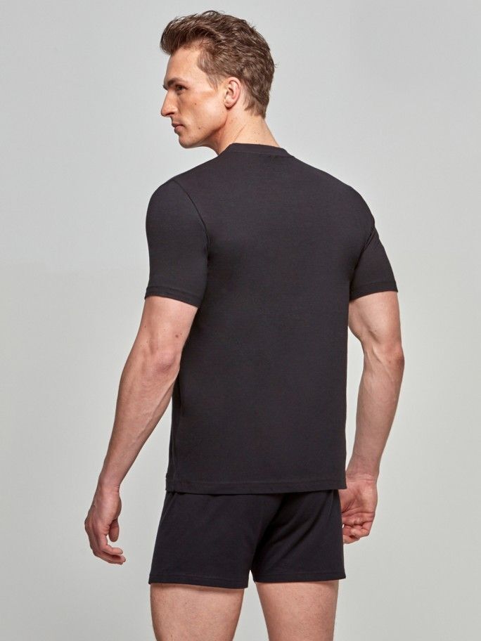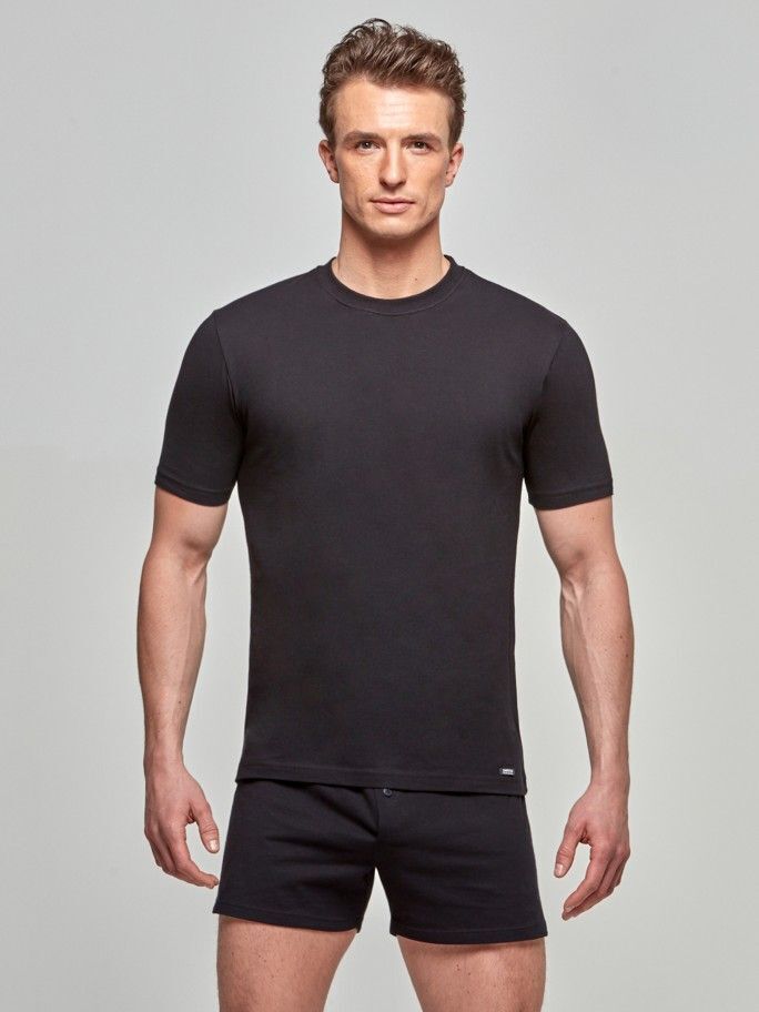 Классическая трикотажная футболка с круглым вырезом из хлопка, обладающего антиаллергическими свойствами. Использование двух нитей с противоположной круткой предотвращает деформацию изделия.