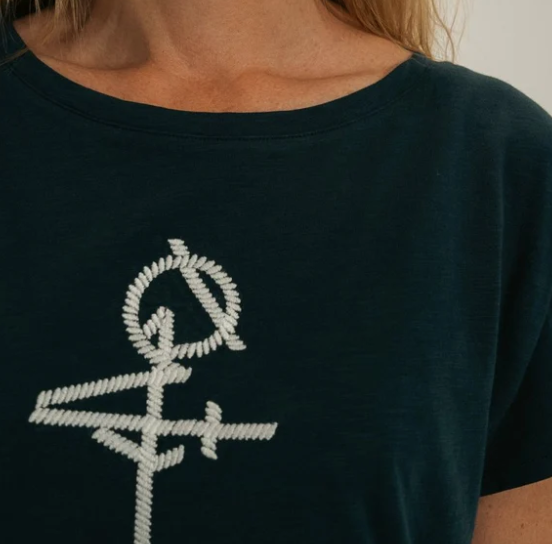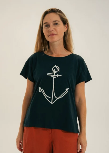 Трикотажная футболка изготовлена из 100% хлопка с вышивкой в виде якоря, которая придает сильный оттенок, напоминающий об элегантности морского стиля. Дышащий и удобный в носке материал делает его незаменимым в солнечные дни. Современный силуэт с очень короткими рукавами и прямой покрой создают повседневный и современный образ, сохраняя при этом утонченность деталей, дорогих морскому миру. Эту футболку легко носить с холщовыми шортами, светлыми джинсами или струящейся юбкой, она сочетает в себе комфорт, простоту и напористый морской дух.