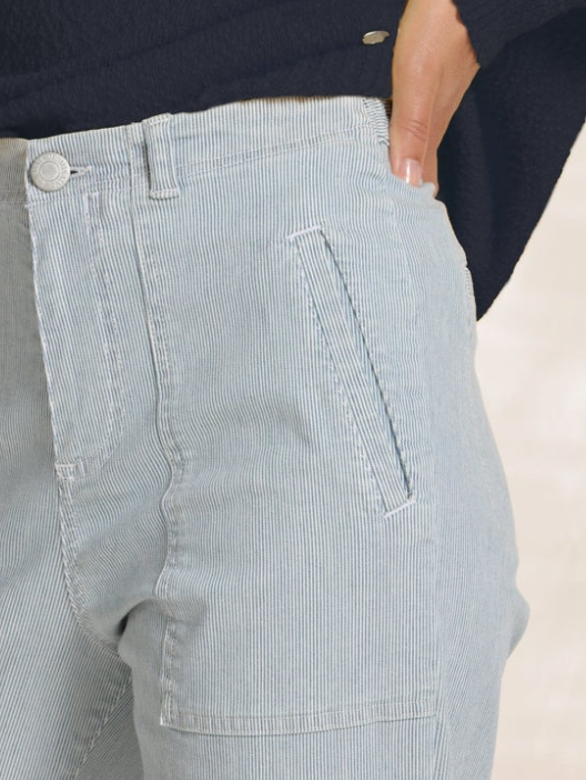 Джинсовые брюки выполнены из удобного и слегка эластичного денима. Два больших накладных кармана спереди и детали от кутюр придают нотку оригинальности и усиливают его продуманный дух. Эта модель идеально подходит для уличного силуэта с оттенком элегантности.