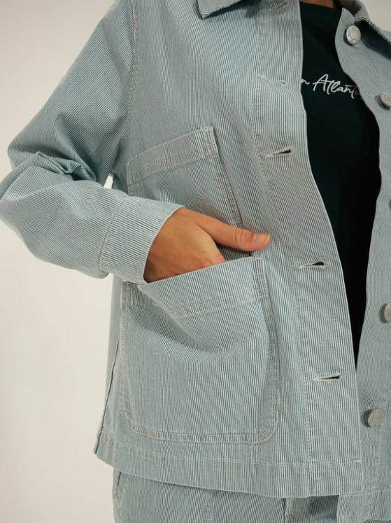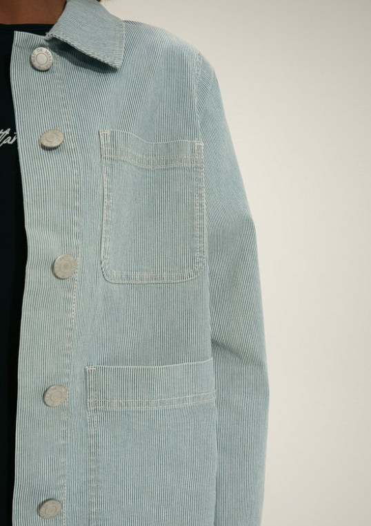 Эта хлопковая куртка стильно повторяет классику повседневного гардероба. Графический узор в полоску придает аутентичный оттенок, напоминающий о морском мире. Разработанный с учетом практичности и долговечности, она отличается четырьмя накладными карманами спереди, идеально сочетающими функциональность и стиль. Прямой крой и классический воротник подчеркивают повседневный стиль, а тщательная отделка подчеркивает мастерство изделия. Универсальная куртка, полная характера, идеально подходящая для тех, кто ценит натуральные материалы, детали, вдохновленные ручной работой, и непринужденную элегантность морского гардероба.
