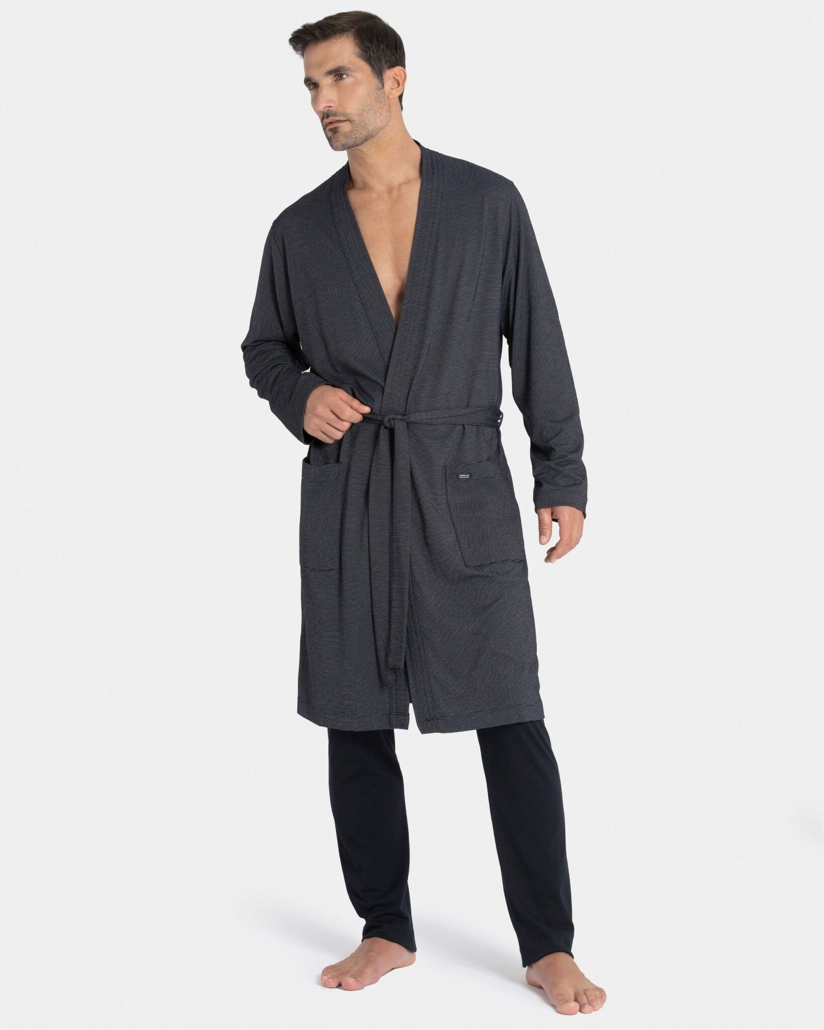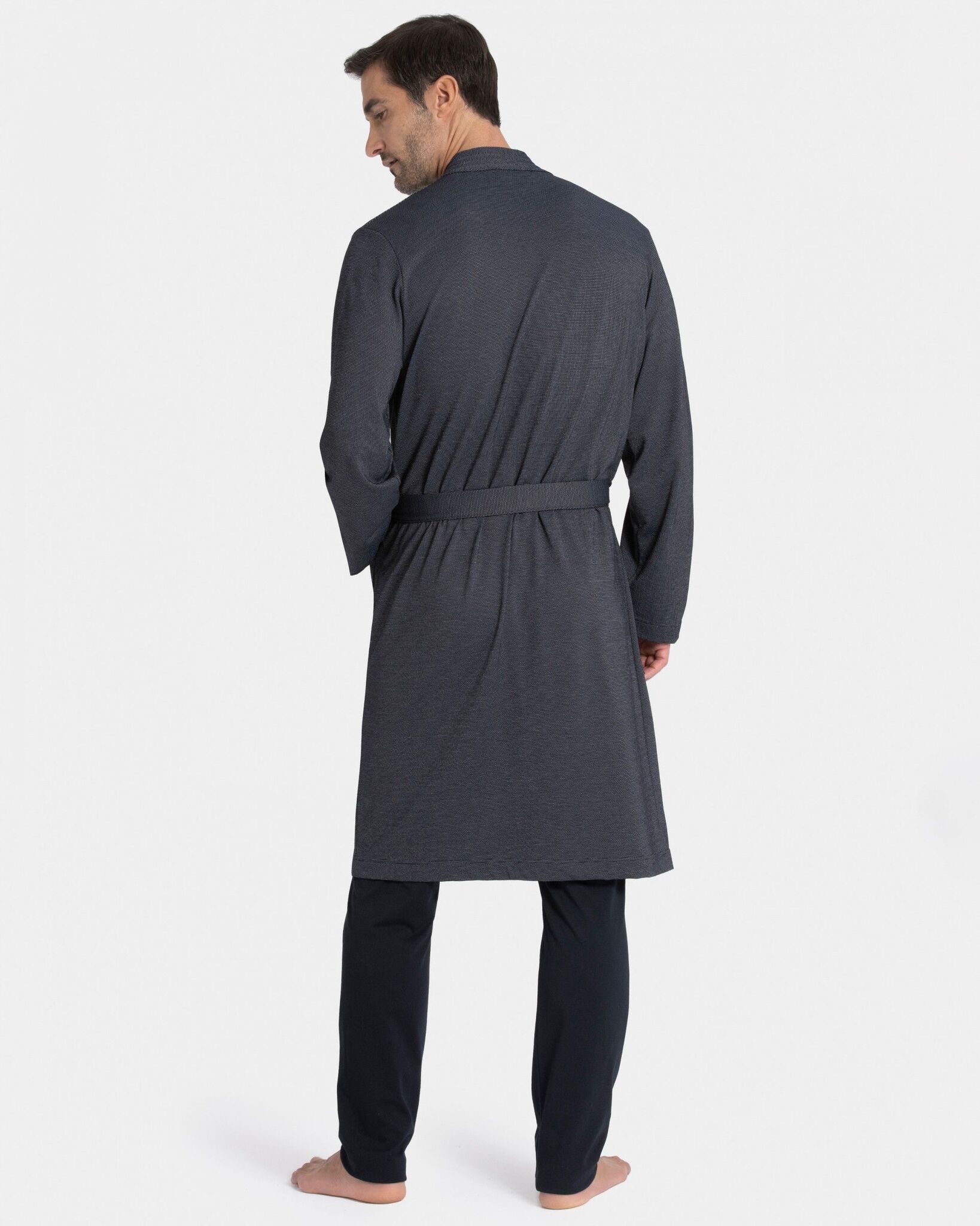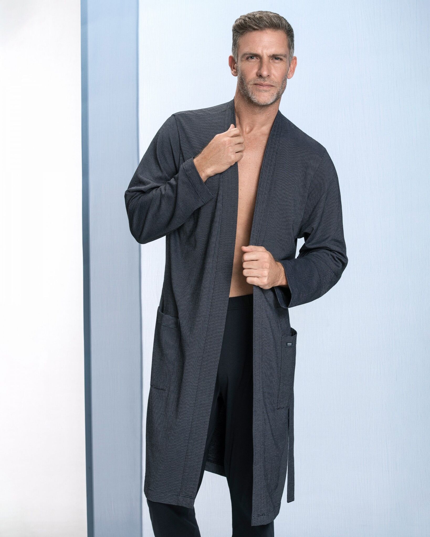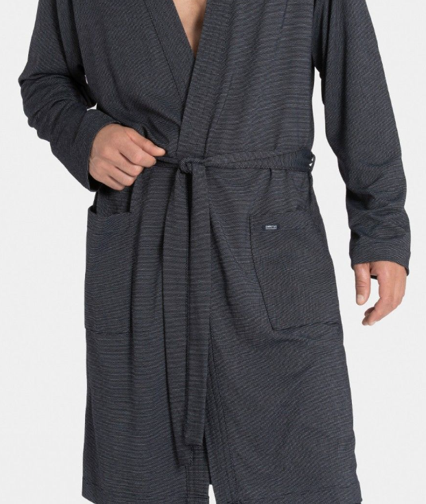 Великолепный трикотажный халат из хлопка с небольшим количеством полиэстера с удобными накладными карманами и съемным поясом с принтом из мелких жаккардовых точек. Внешняя сторона халата представляет мягкую жаккардовую структуру, а внутренняя сторона - теплую, ворсистую, похожую на фланель ткань. Такой "двухсторонний" трикотаж делает халат необыкновенно комфортным. Произведено в Португалии.Длина 118 смСостав: 75% хлопок 25% полиэстер