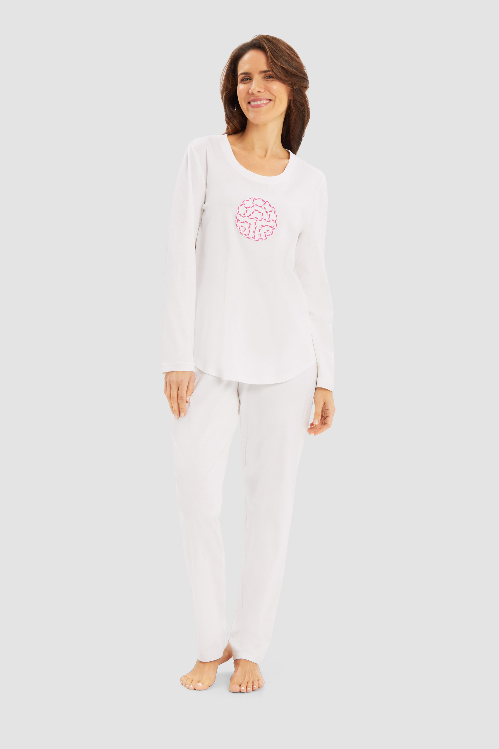 Великолепная пижама в спортивном стиле с длинными рукавами с декоративной вышивкой логотипа Féraud в зоне декольте и длинными прямыми брюками.