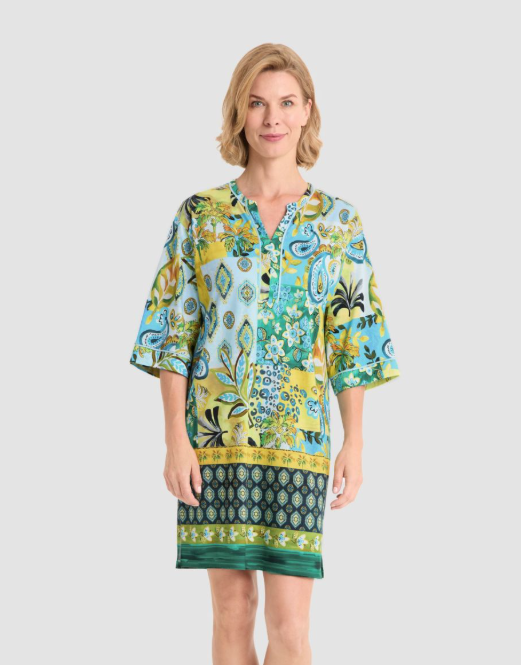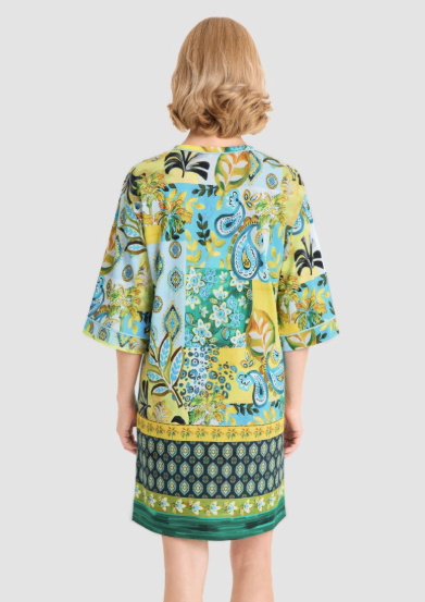 Дивное платье для ценителей богемной роскоши, кто ищет художественные вещи в духе "свободного шика"- эта реплика знаменитого бренда ETRO с узором Пейсли, особенно модным в этом сезоне, в этническо-богемном стиле с V-образным вырезом с отделкой контрастной каймой и короткими широкими рукавами. Боковые карманы и разрезы обеспечивают комфорт и удобство.