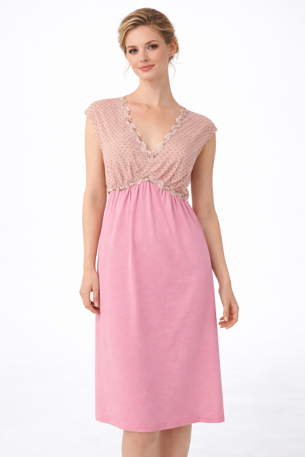 Великолепная сорочка без рукавов с декоративной батистовой кокеткой с кружевной отделкой по краям. Сделано в Германии.