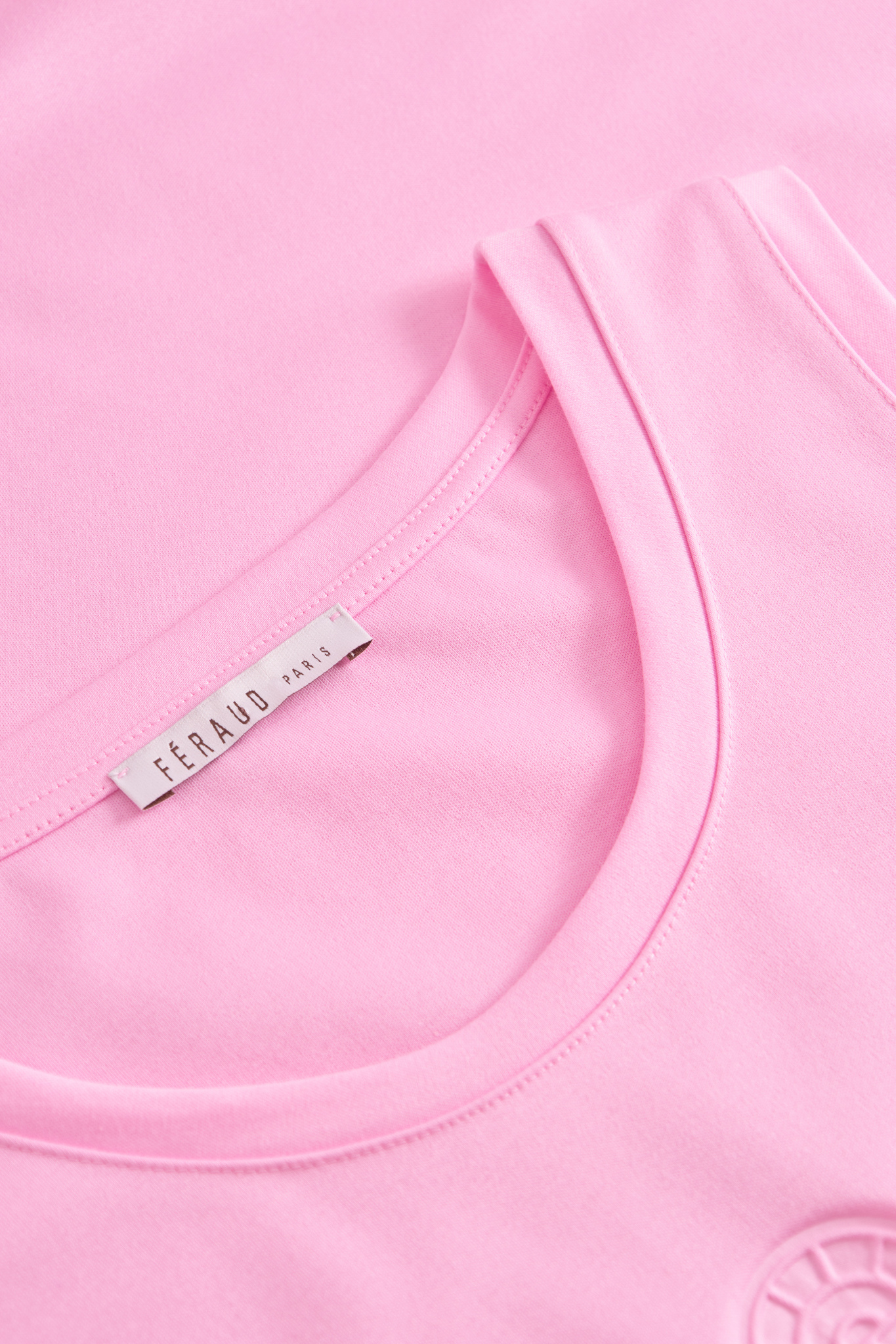 Дивная сорочка без рукавов, с круглым вырезом и боковыми разрезами. В центре находится декорированное классическое солнце Féraud. Для оптимального комфорта эта область подстилается, так что ничто не может поцарапать кожу.