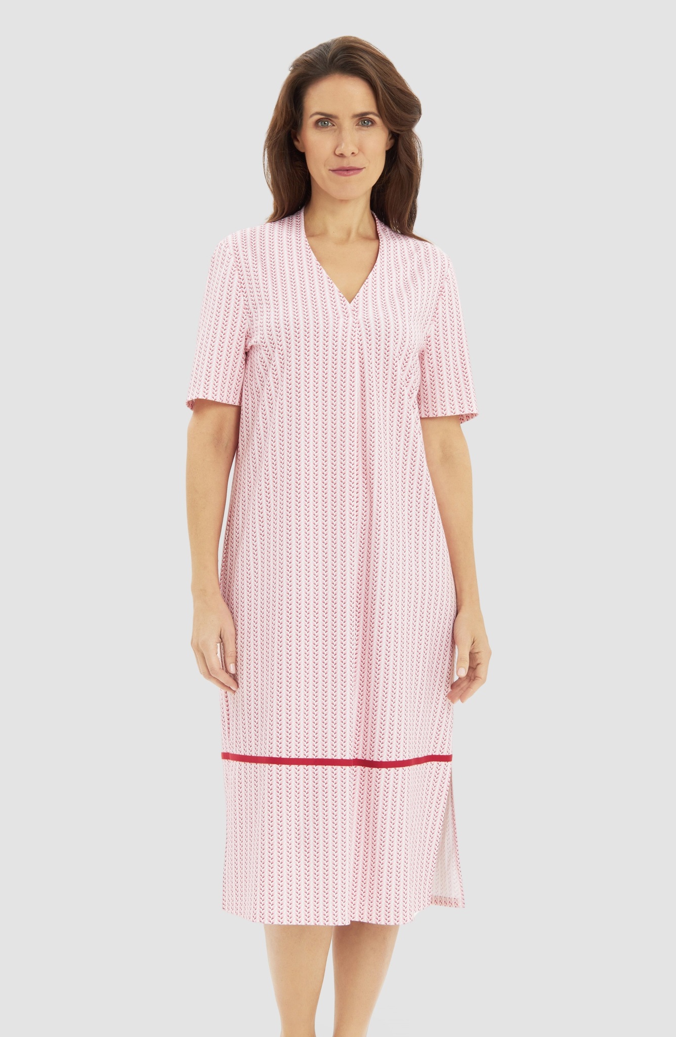 Великолепная сорочка с V-образным вырезом, складкой спереди, контрастной отделкой по низу сорочки, короткими рукавами и боковыми разрезами с минималистичным принтом . Внизу вышит логотип Féraud.