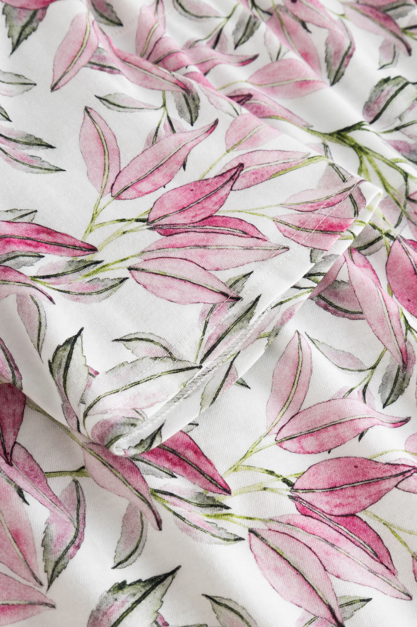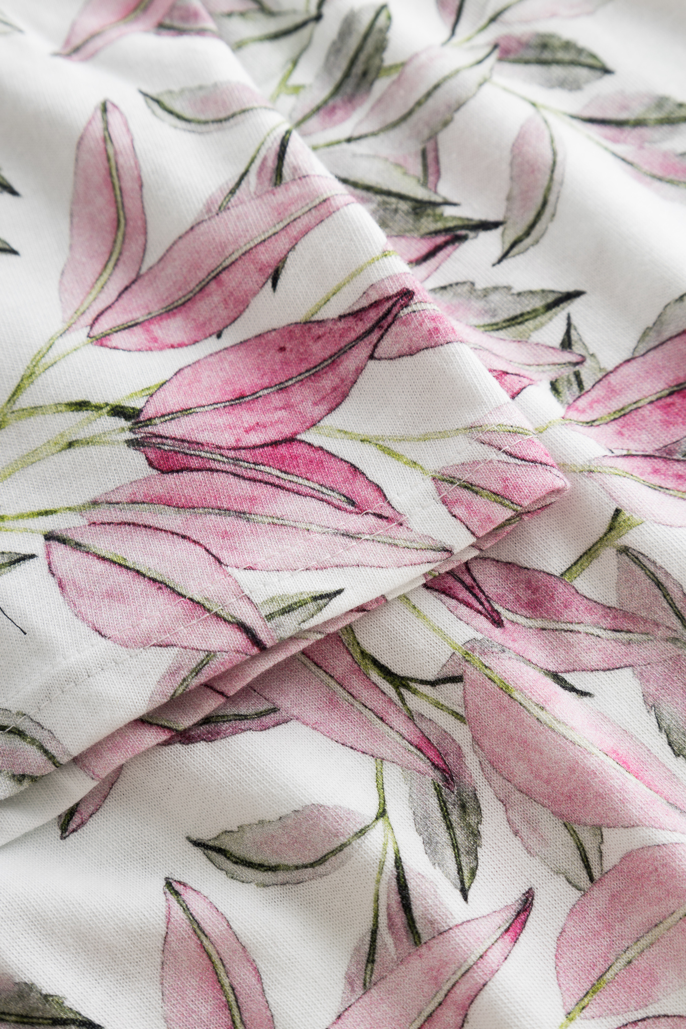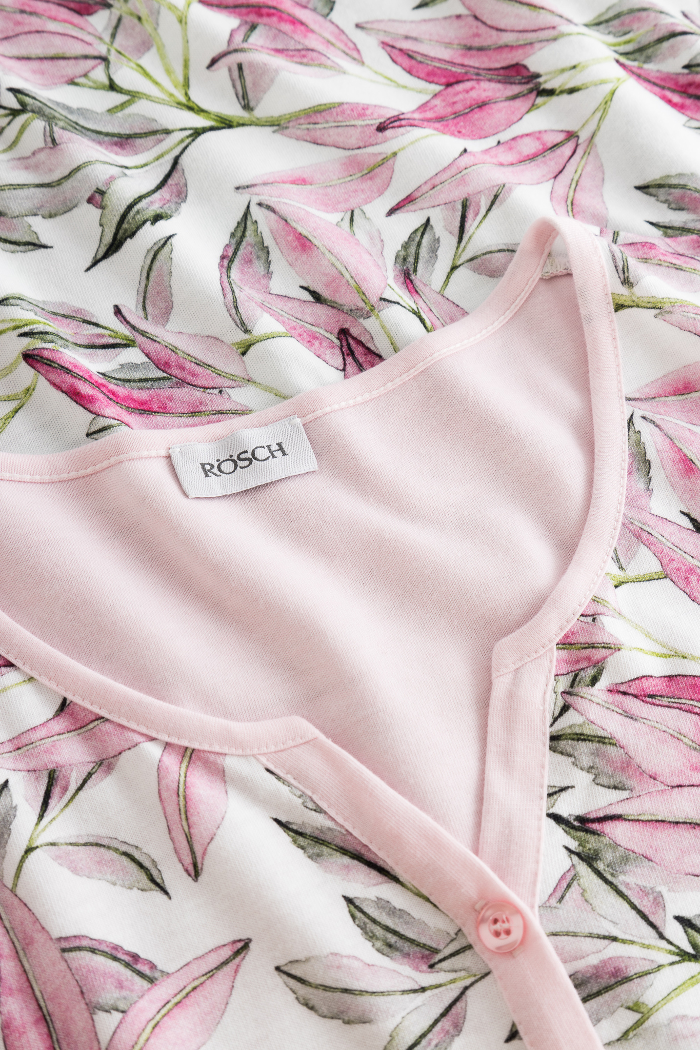 Великолепная сорочка с застежкой на пуговицы с короткими рукавами с принтом в виде зеленых и розовых листьев.