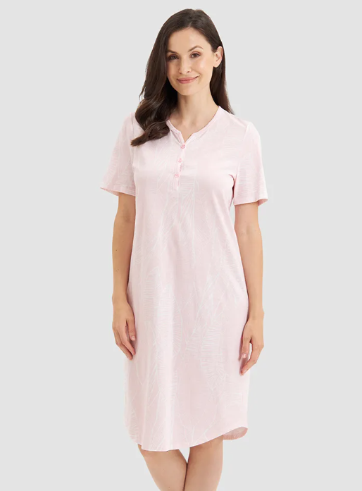 Дивная трикотажная сорочка/платье в нежных тонах с роскошным принтом выполнена из особой высококачественной смесовой ткани со специальной обработкой, обеспечивающей долговечность. В ее составе египетский хлопок- гладкий и бархатистый и исключительного качества шелковистый модал (вискоза)- тонкий, прочный и дышащий. Эта сорочка/платье с V-образным вырезом с контрастной розовой окантовкой, со спущенной линией плеч, короткими рукавами с манжетами с контрастной отделкой и боковыми разрезами. Она универсальна: ее можно носить и как сорочку, и как платье. В любом качестве она будет дарить Вам ощущение легкости, комфорта и элегантной роскоши.