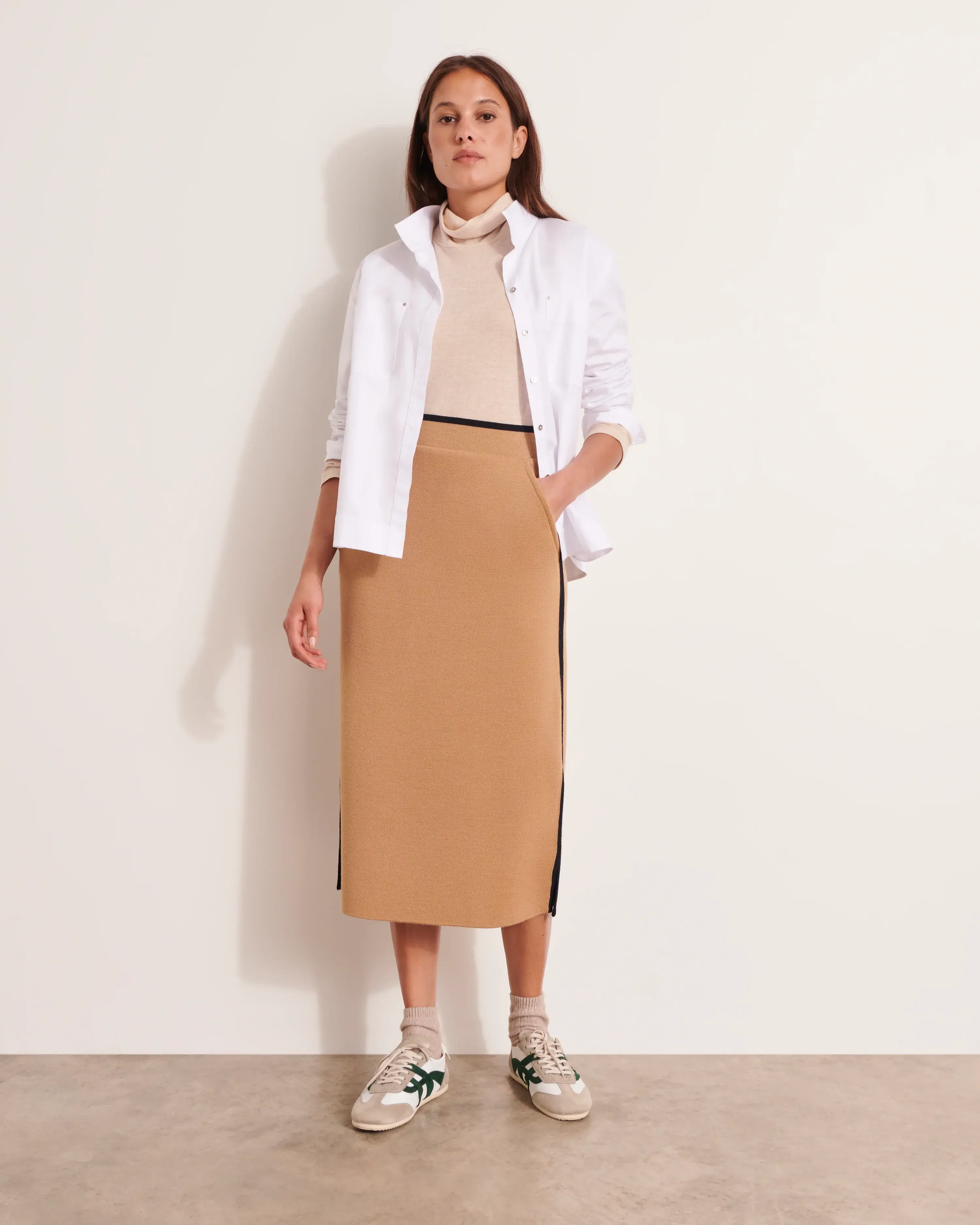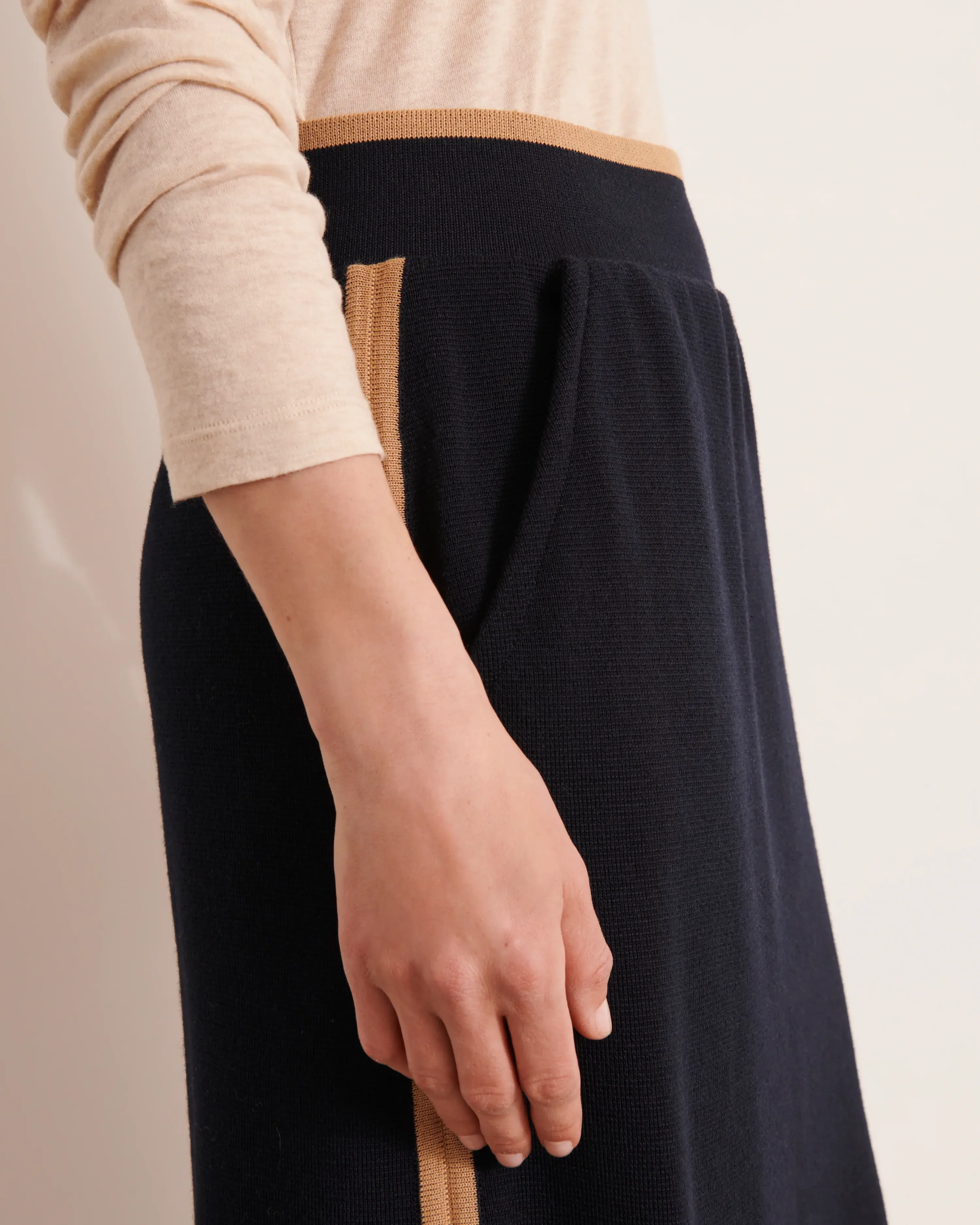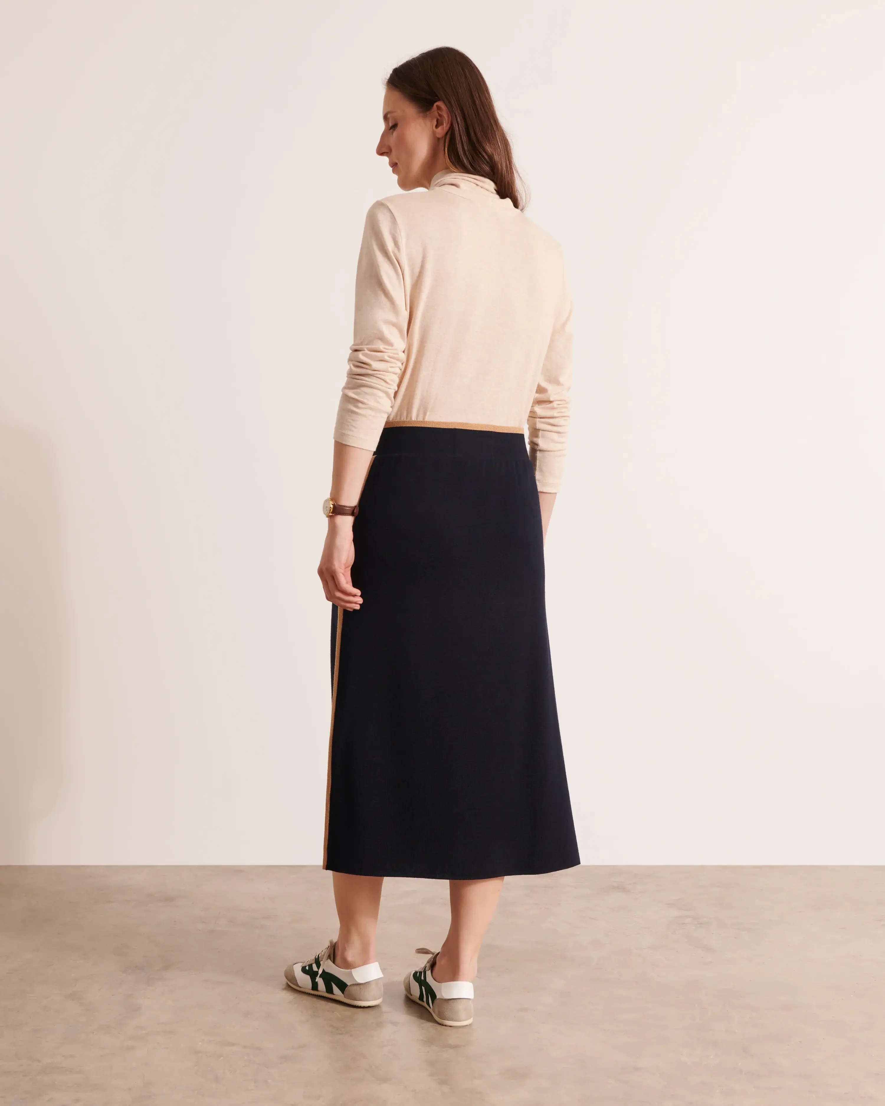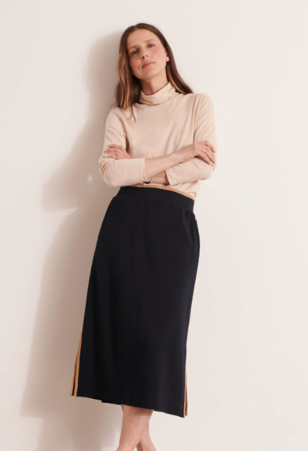 Великолепная двусторонняя трикотажная юбка соблазняет элегантной длиной миди и удобным поясом из лайкры. Итальянские карманы и боковые разрезы добавляют современный и практичный штрих, а контрастная строчка подчёркивает изысканность модели.Юбка, связанная в мастерских в Роанне, полностью изготовлена во Франци, что является гарантией качества и мастерства.