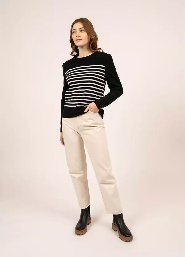 Шерстяной джемпер классического стиля с современными женственными деталями. Круглая горловина, прямой крой и вязка шерстяной резинкой воплощают в себе основные черты классических джемперов. Плечи со слегка пышными рукавами придают модели женственность и нежность и легкость.