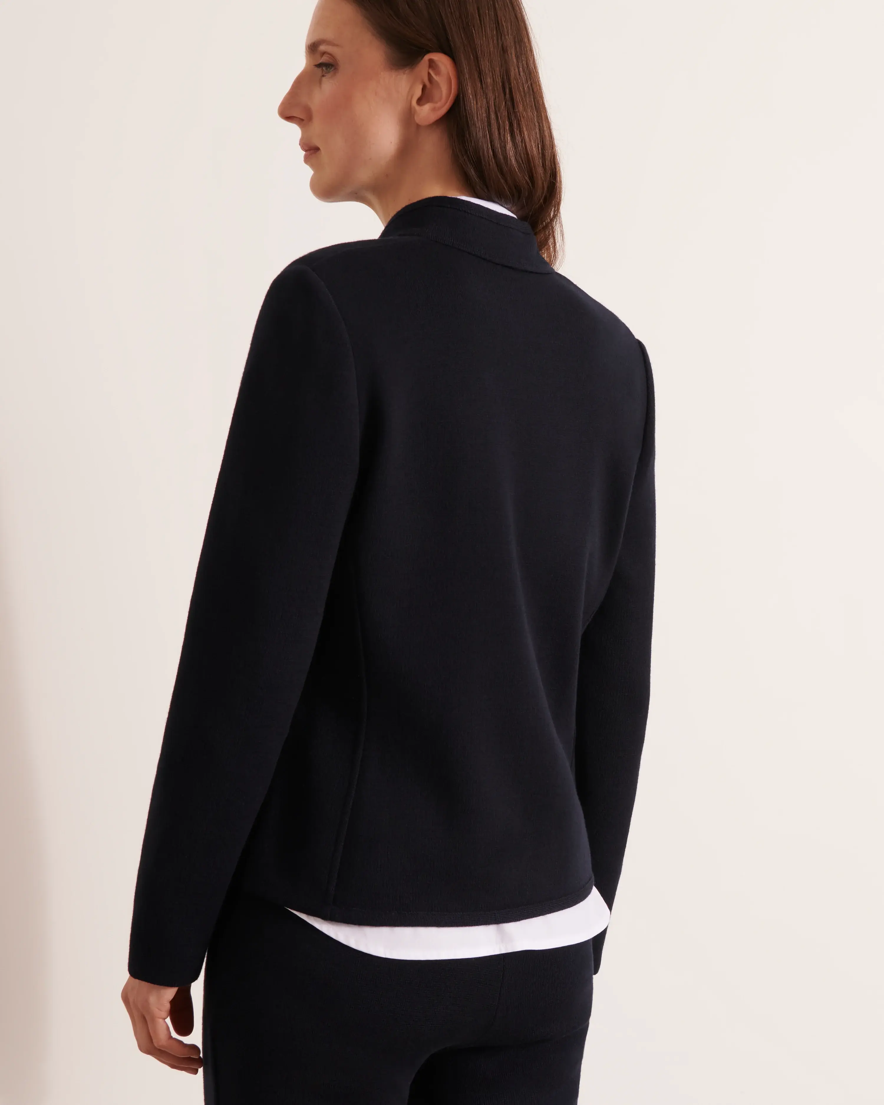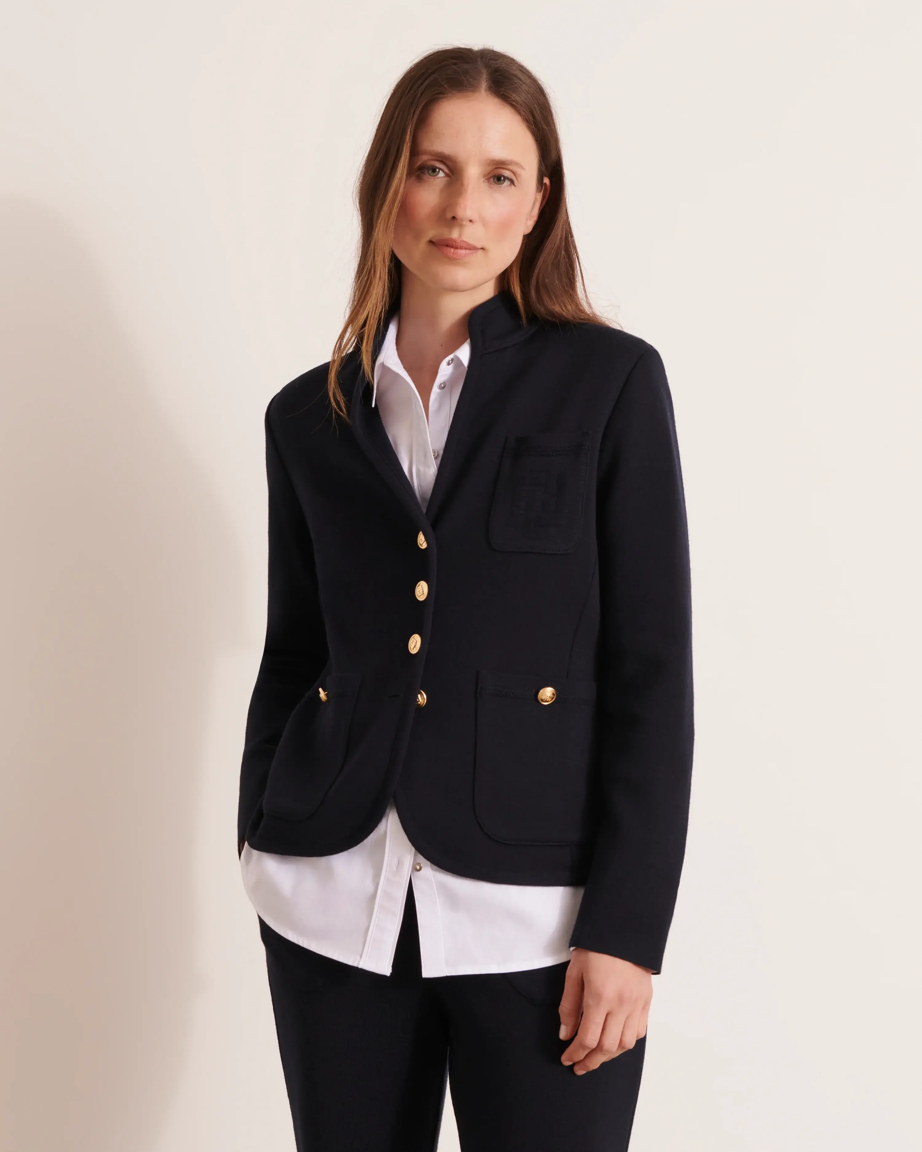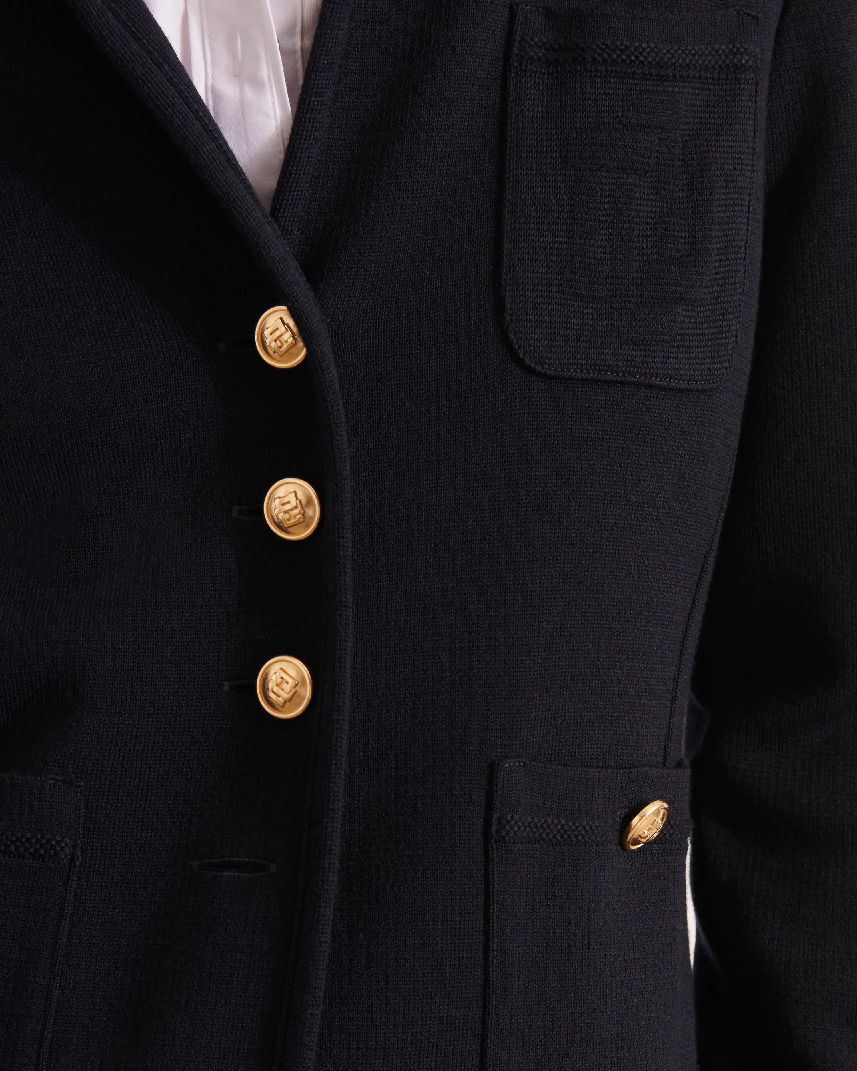Великолепный жакет из миланского трикотажа воплощает идеальное сочетание вневременной элегантности и современного комфорта. Приталенный крой подчеркивает силуэт, обеспечивая естественную непринужденность. Воротник-стойка и золотистые пуговицы добавляют изысканности, а накладные карманы, один из которых украшен логотипом CD, подчеркивают сдержанный фирменный стиль бренда. Изготовленная из исключительной мериносовой шерсти, эта модель окутает вас мягкостью и теплом. Связанная во Франции, в исторических мастерских в Роанне, она отражает уникальное мастерство и внимание к каждой детали.